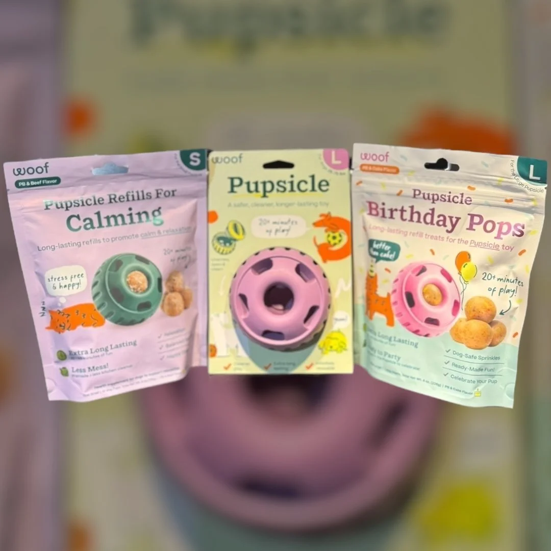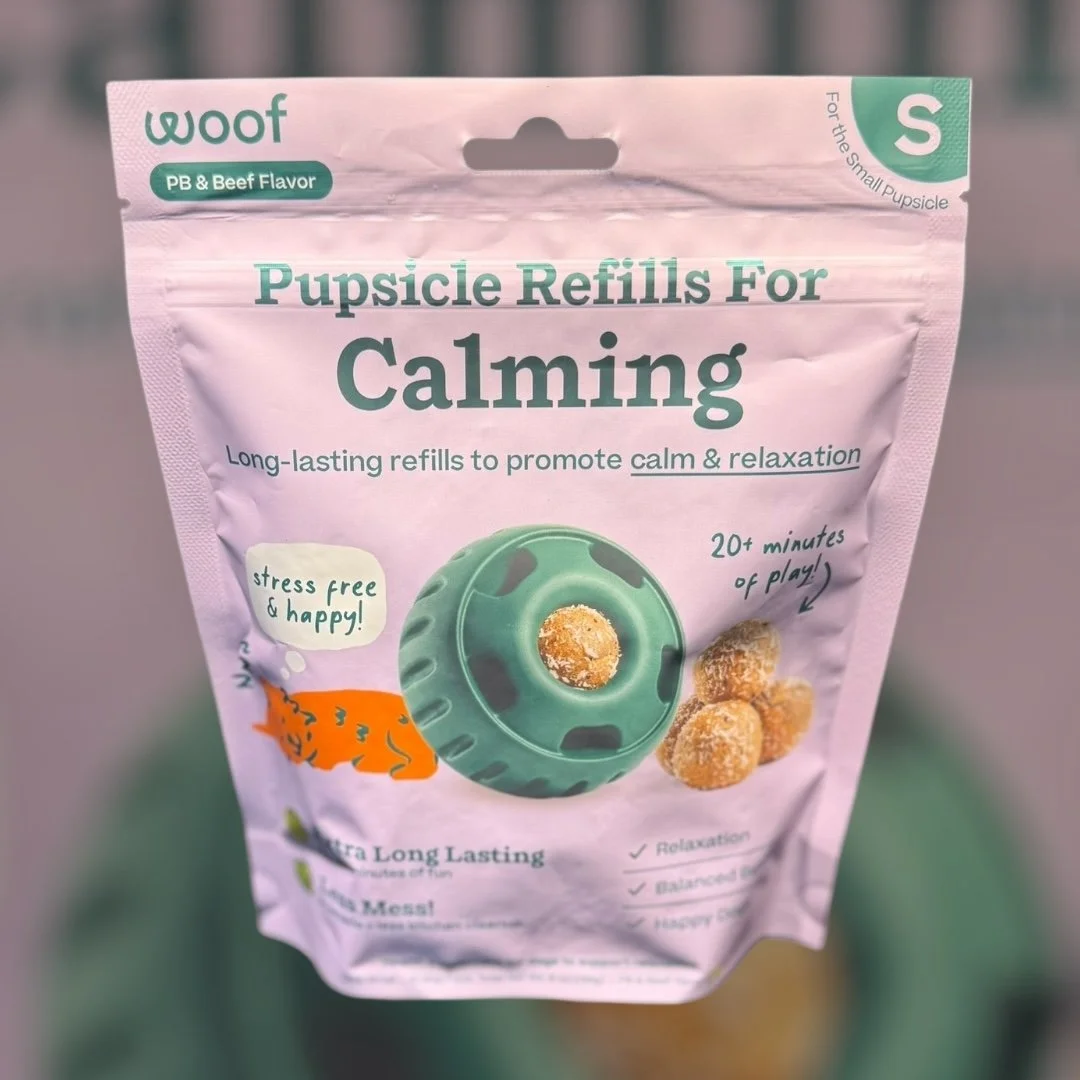 Calming Pops provide 30+ minutes of enrichment, with the added benefit of calming ingredients like passion flower, tryptophan, and magnesium to help cope with stress from thunderstorms, fireworks, and travel days.
