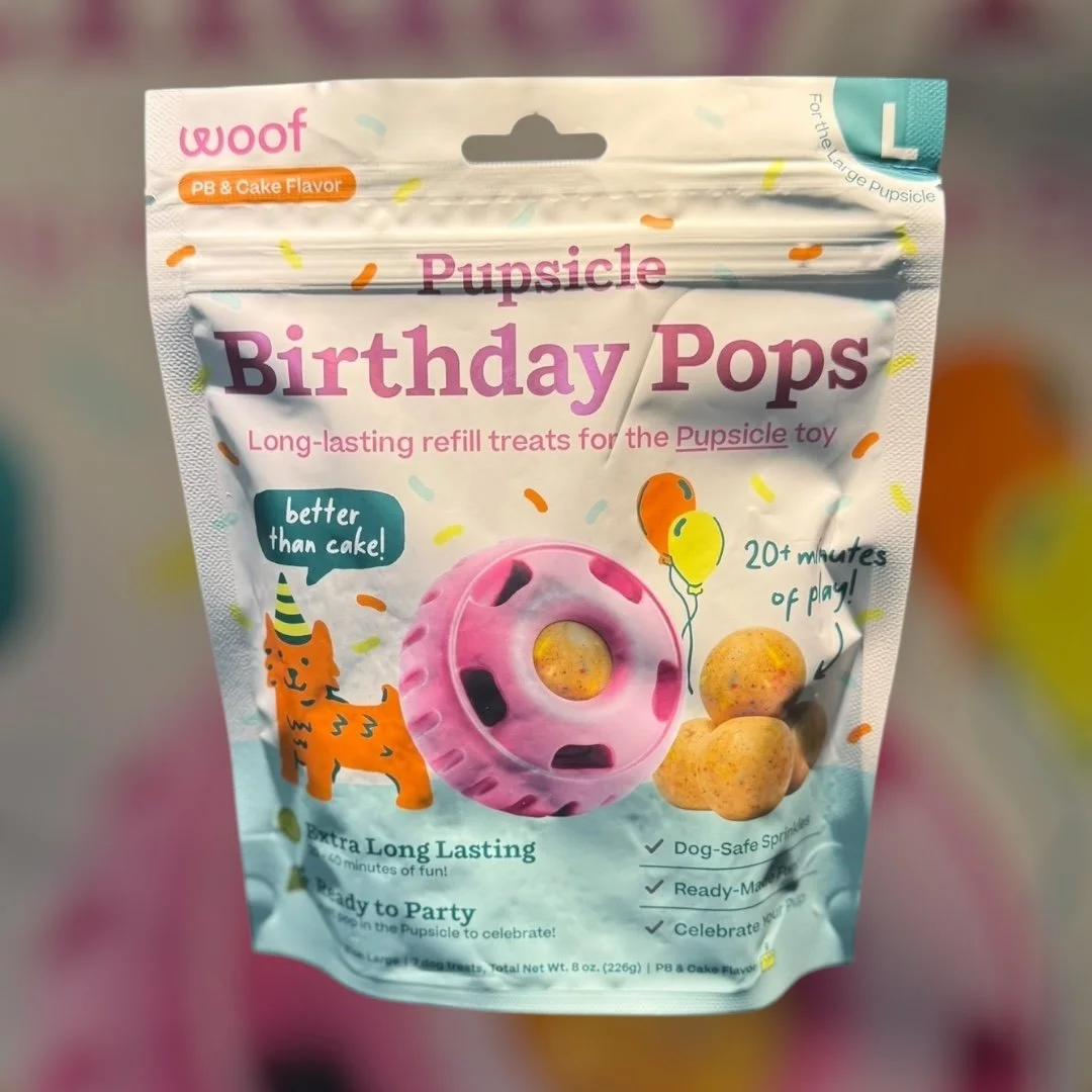 A slice of cake for you, a cake Pop for them! Whether your pup is celebrating their birthday, their Gotcha Day, or just being the cutest dog ever, Birthday Pops are the perfect way to party. While they smell just like a slice of birthday cake, they’re naturally delicious and packed with dog-safe rainbow sprinkles so your pup can have a treat made just for them.