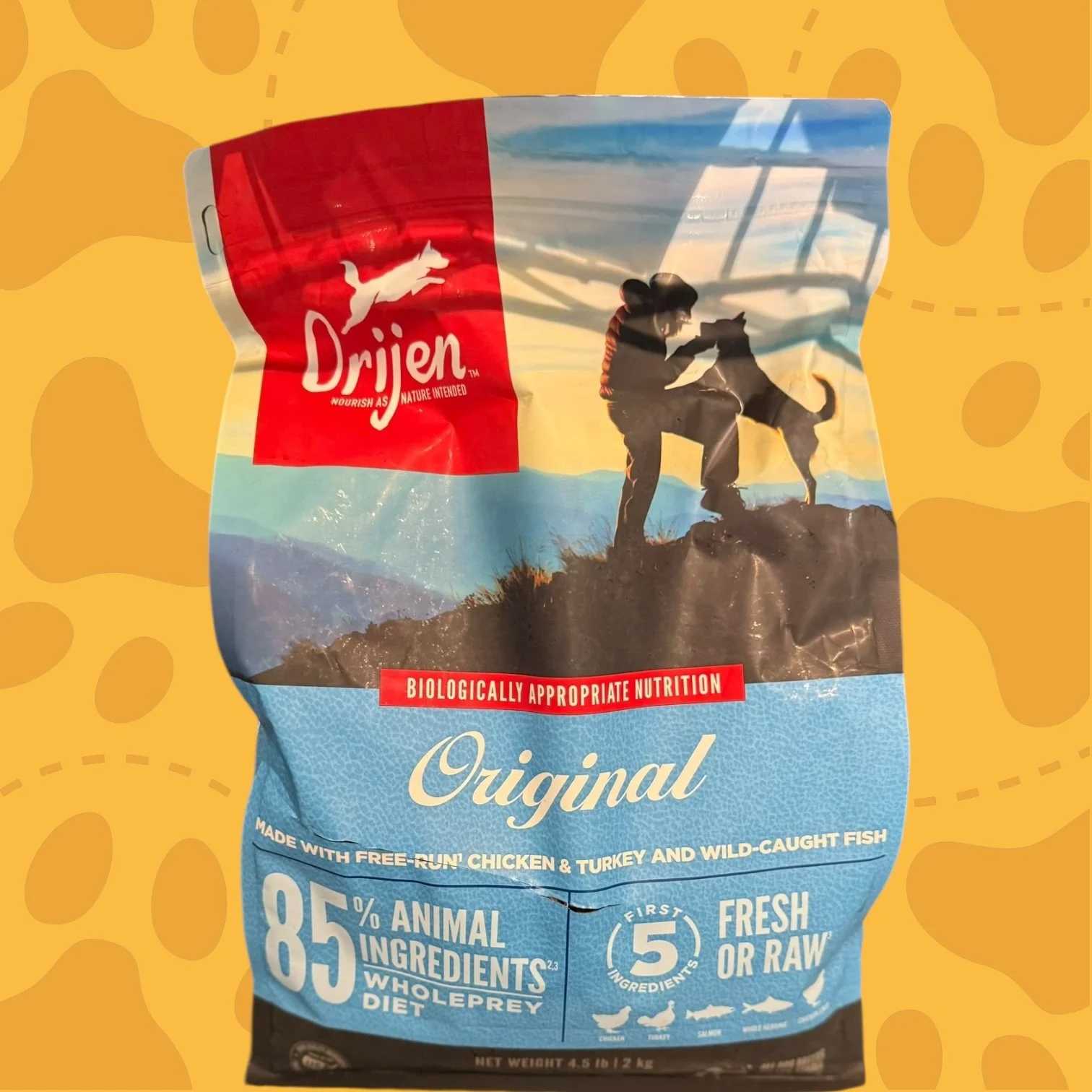 Help your dog thrive with the power of protein-rich recipes that provide peak nourishment. Dogs are ancestral carnivores, so they need a Biologically Appropriate diet packed with whole animal ingredients. ORIJEN® Original diet is crafted with 85%* quality animal ingredients like fresh or raw free-run** chicken and turkey and wild-caught fish. Packed with WholePrey animal ingredients like organs and bone, ORIJEN food is made with the most nutrient-dense, succulent parts of the prey to deliver the nutrition dogs need. The nourishing animal ingredients in ORIJEN Original diet help support your dog’s Immune Health, Skin & Coat Health and Digestive Health. The result is a diet for your canine companion that is beyond comparison.